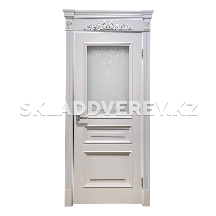 Дверное полотно: каркас полотна изготавливается из массива хвойных пород, покрытие многослойная итальянская эмаль с серебристой патиной.